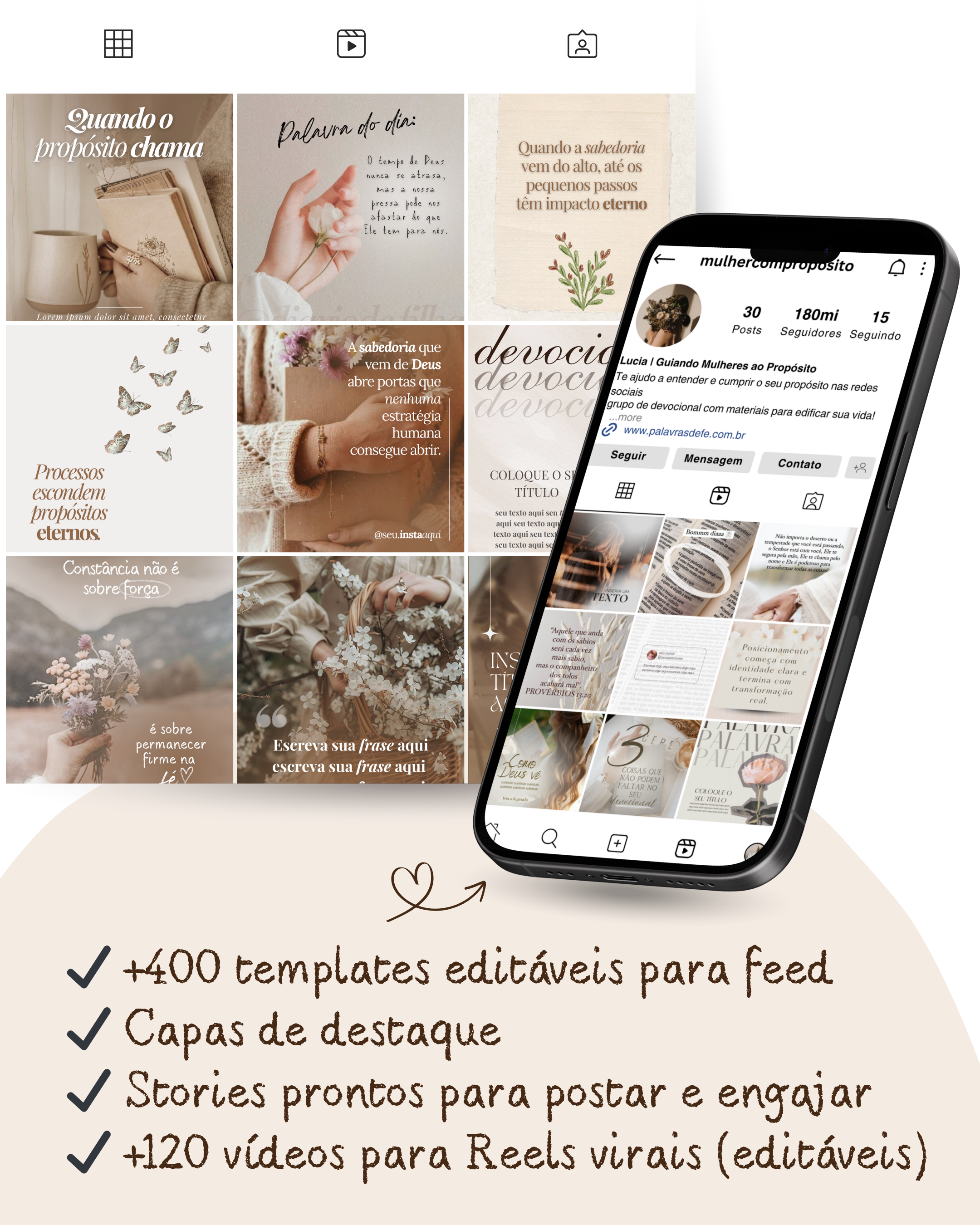 Conteúdos prontos para quem quer começar a falar de Deus com clareza e constância. Materiais pensados para gerar conexão, autoridade e propósito ✨ Ideal para mulheres que sentem o chamado, mas não sabem o que postar ou como começar.