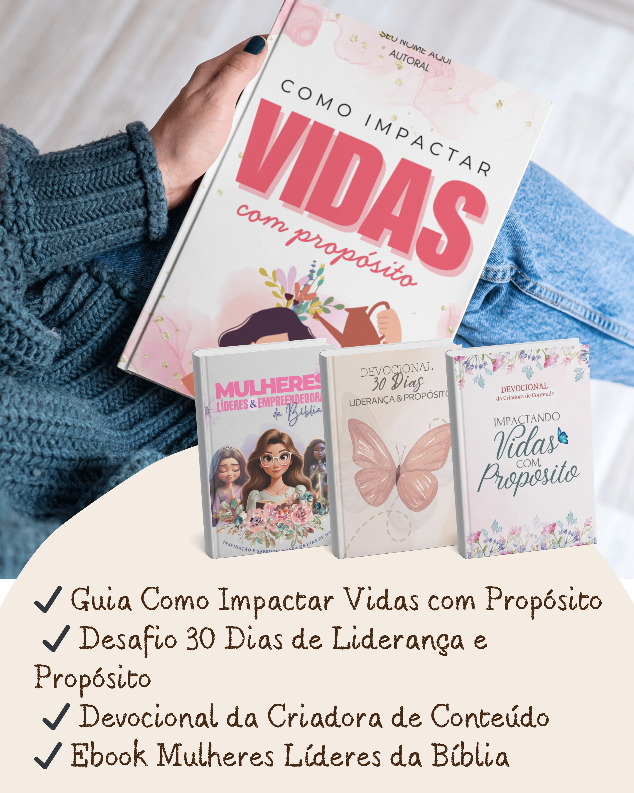 Percebi que muitas mulheres cristãs desejam vender infoprodutos, mas enfrentam dificuldades como falta de tempo, criatividade ou conhecimento técnico para criar materiais de qualidade.